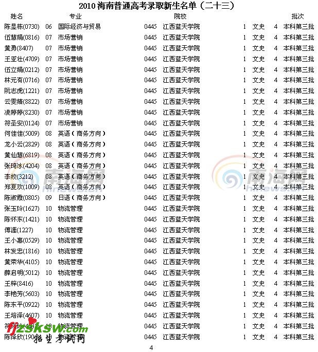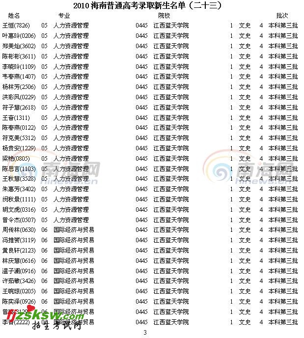 [组图]2010年海南省高考录取名单(二十三)