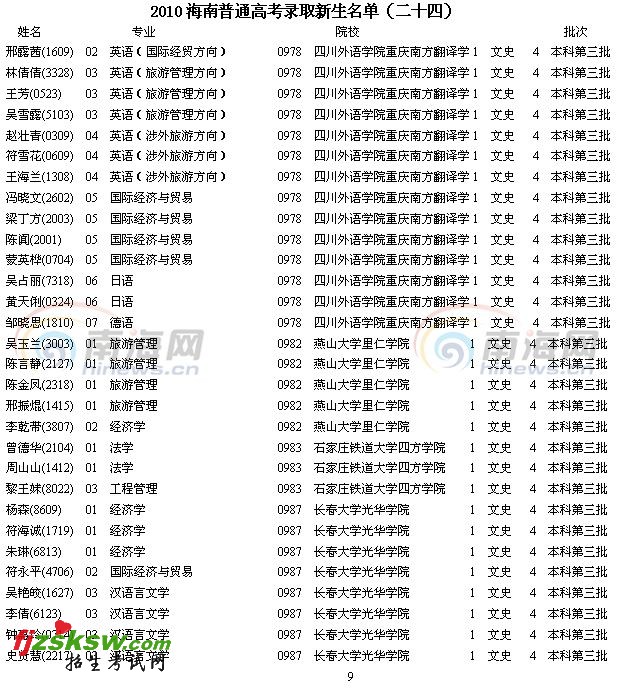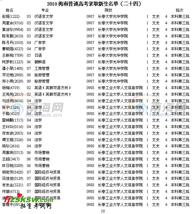 [组图]2010年海南省高考三本录取名单(二十四)