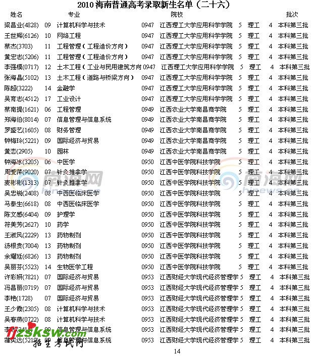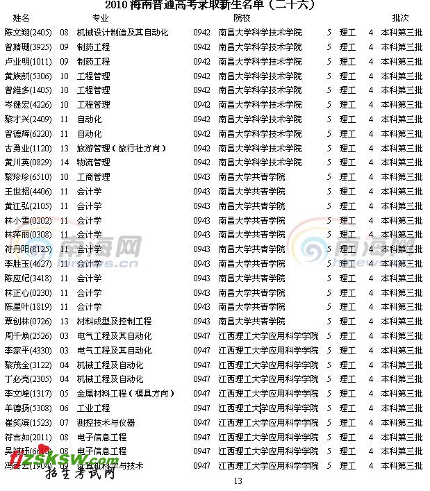 [组图]2010年海南高考录取名单查询(三本二十六)