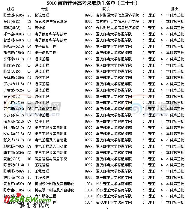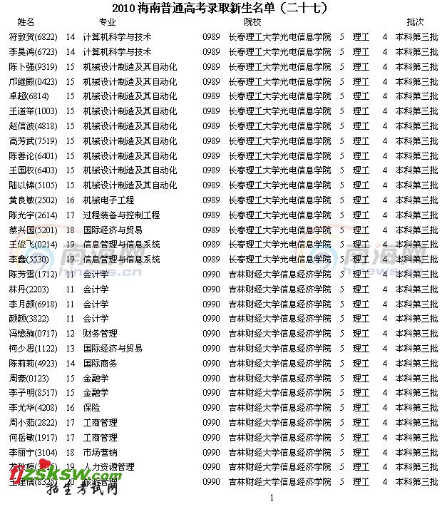[组图]2010年海南省高考录取名单查询(27)