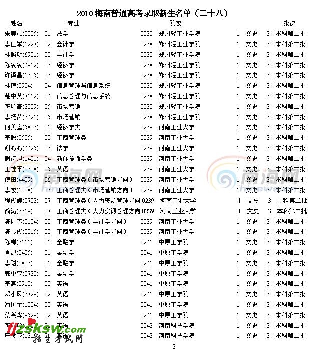 [组图]2010年海南省高考录取名单查询(28)