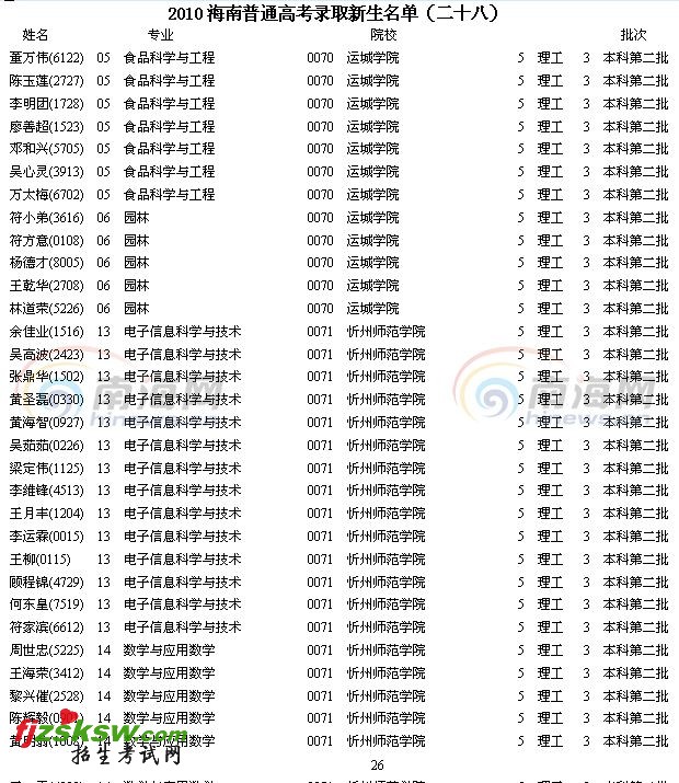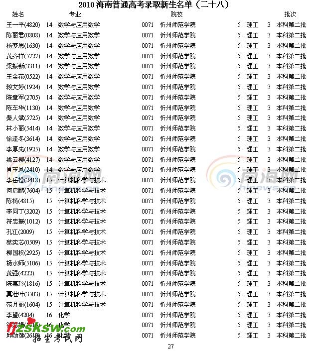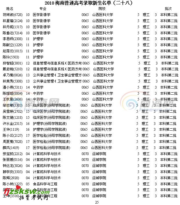 [组图]2010年海南省高考录取名单查询(28)