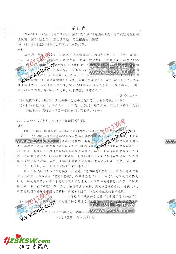 [组图]海南2011年高考历史试题及答案