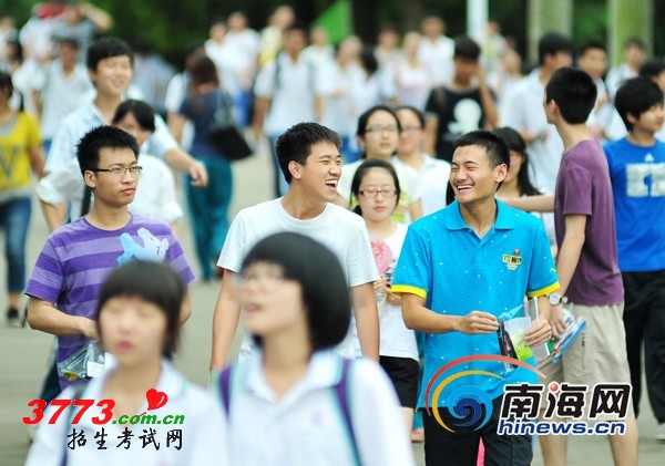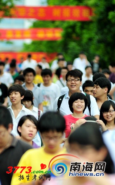 9日,海南高考最后一天,结束上午科目考试,许多考生走出考场满面笑容。(南海网记者秦彦摄)