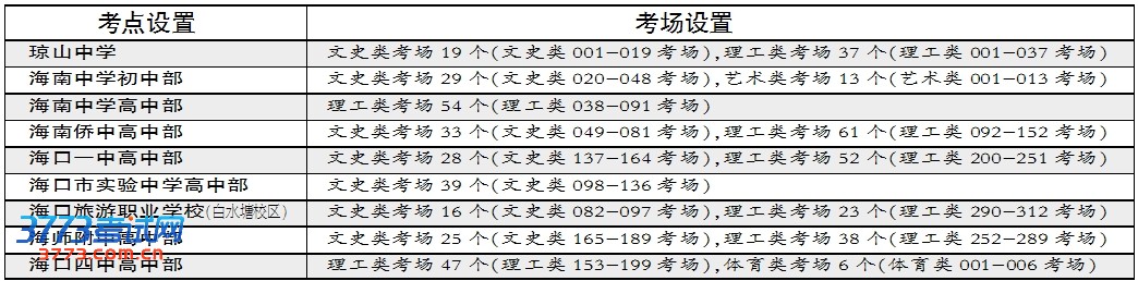 海口9个考点考场安排