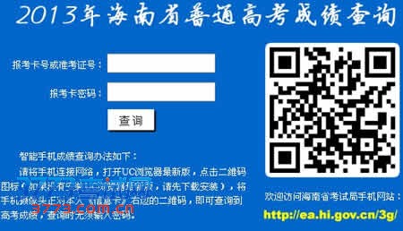 请将手机连接网络,打开UC浏览器最新版,点击二维码图标(如果没有安装UC浏览器最新版,请先下载安装),将手机摄像头正对本人《信息卡》右边的二维码,即可查询到高考成绩,查询时无须输入密码。