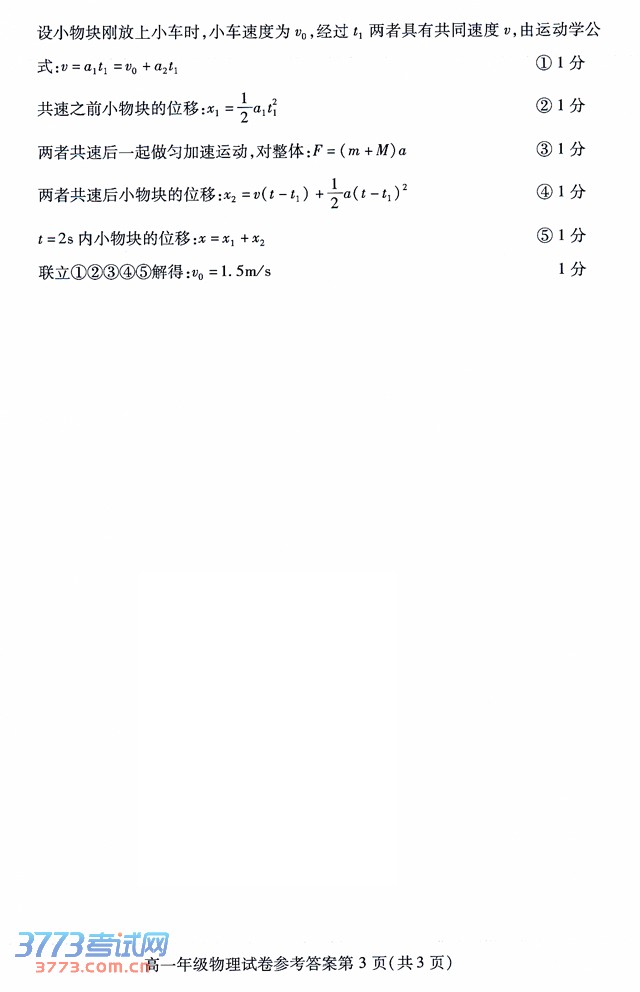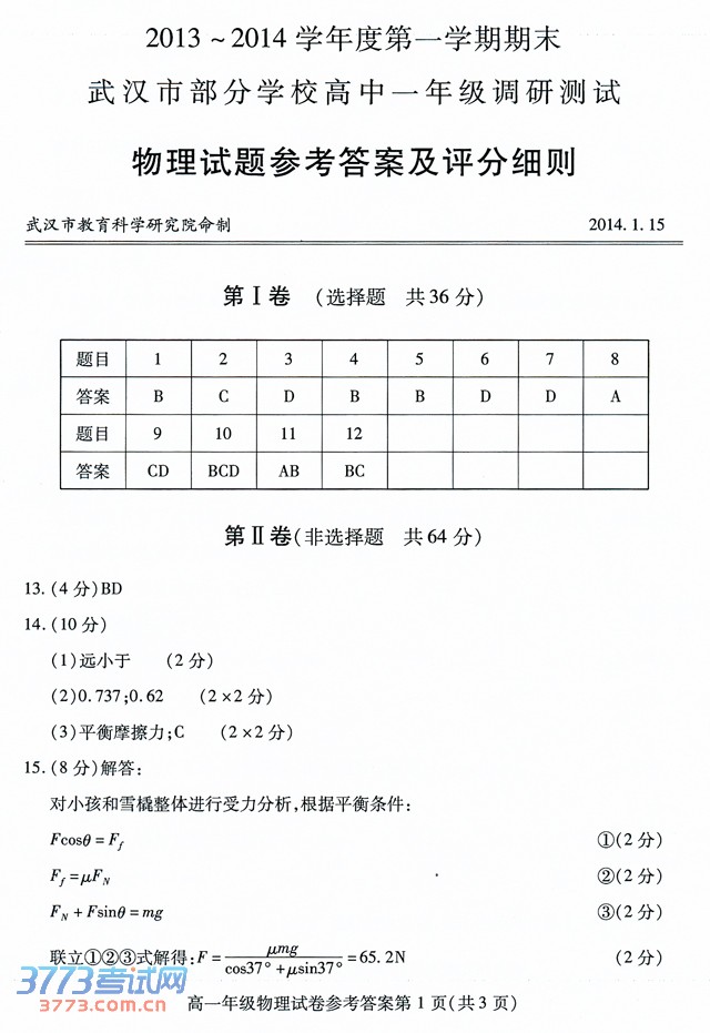 [组图]2014武汉高一调考物理试题答案