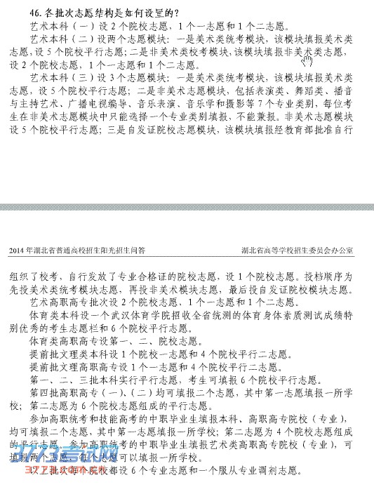 [组图]2014湖北高考各批次志愿设置情况
