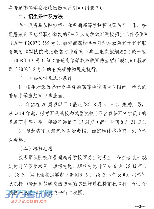 [组图]关于做好2014湖北军校国防生招生工作的通知