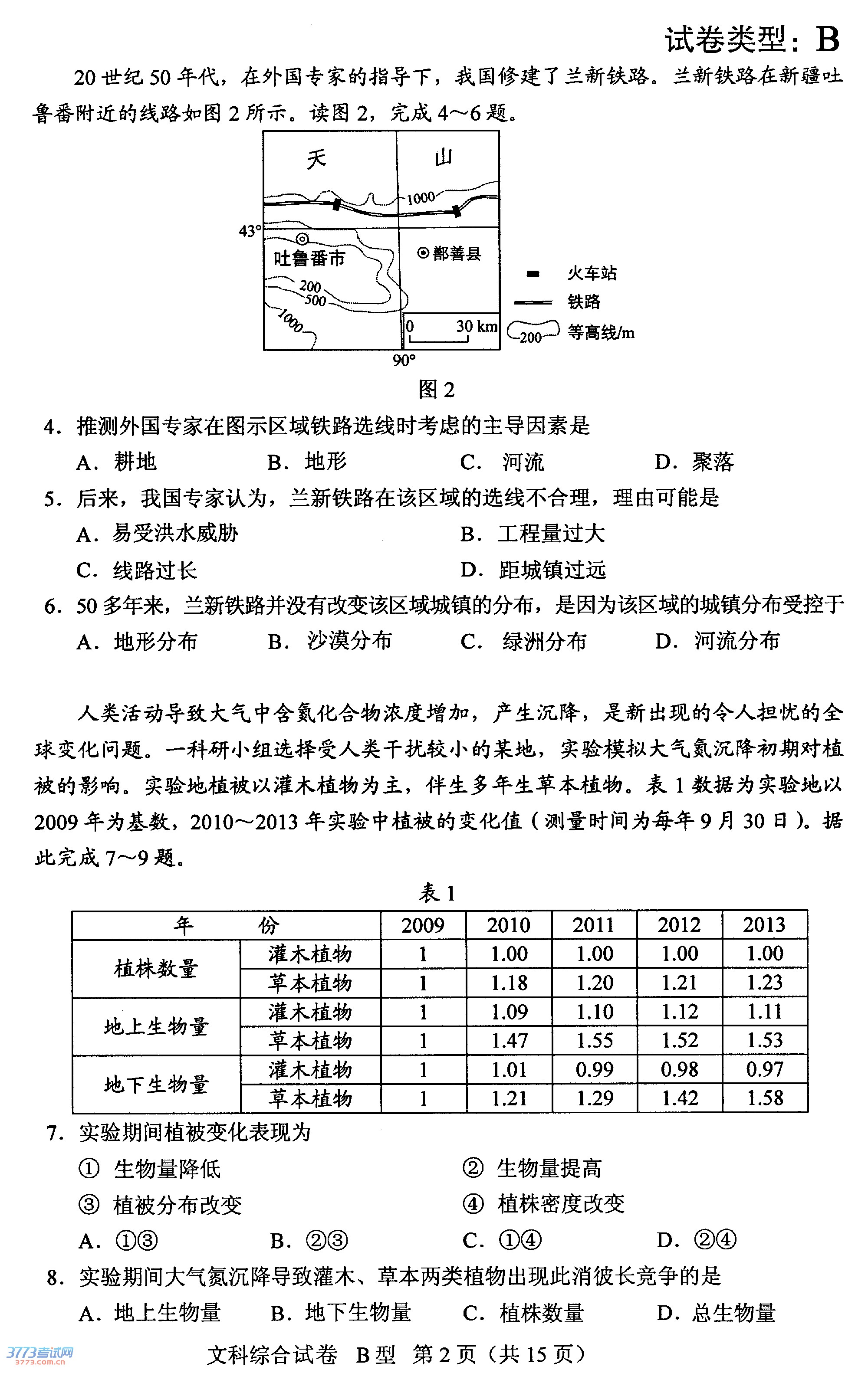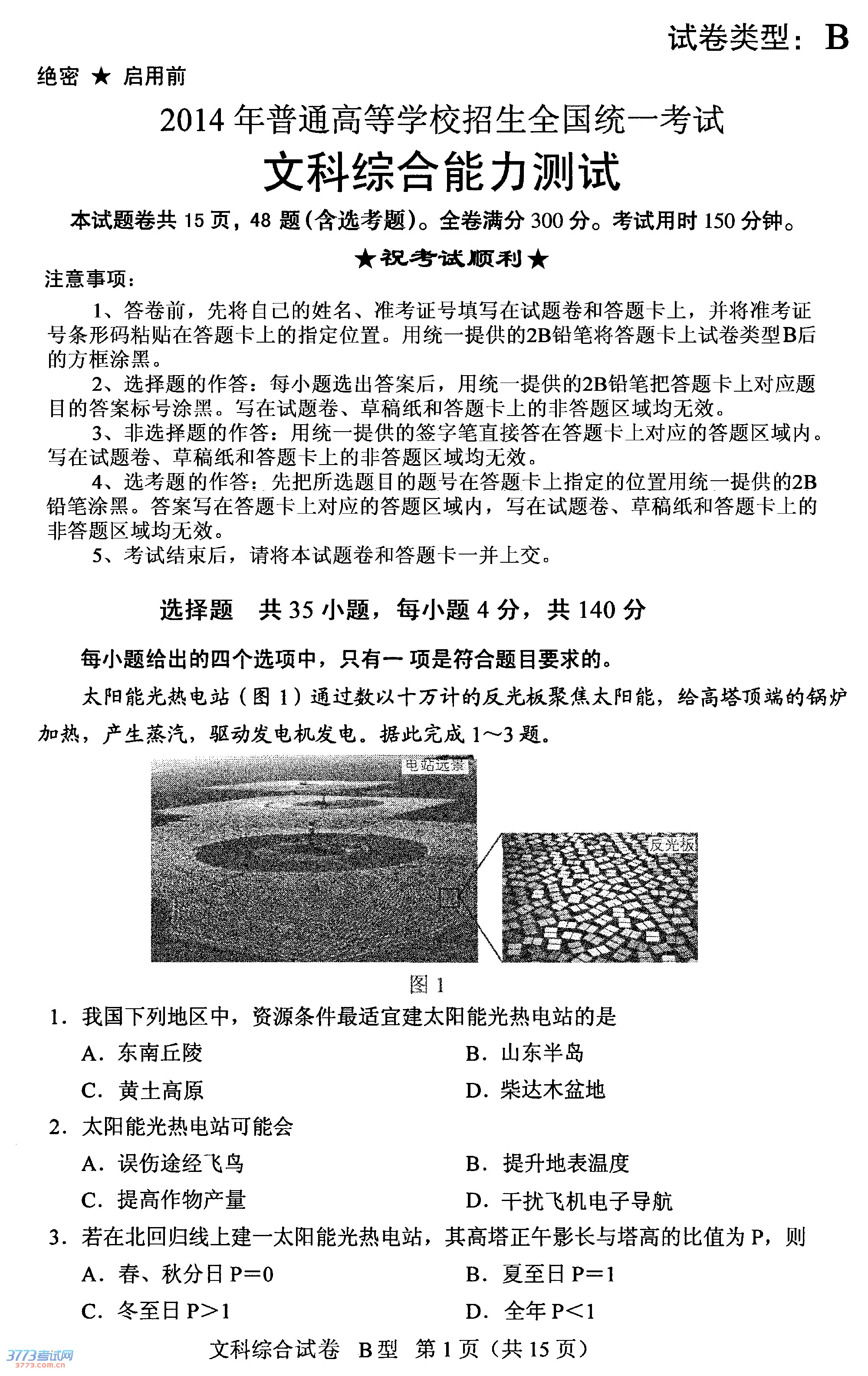 [组图]2014湖北高考文综B卷试题及答案