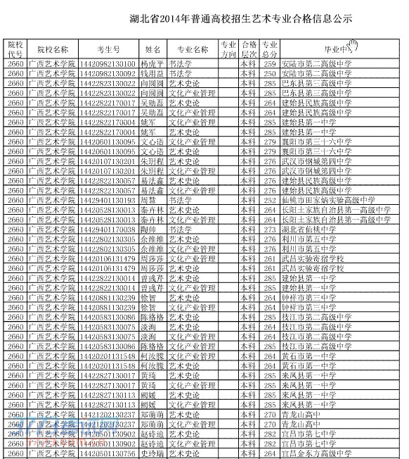 [组图]2014广西艺术学院湖北艺术专业合格信息补充公示