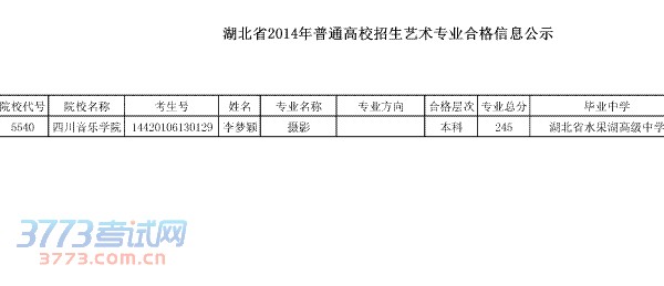 [图文]2014四川音乐学院湖北艺术专业合格信息补充公示