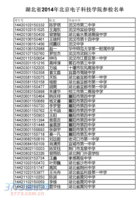 [组图]湖北省2014年北京电子科技学院参检名单