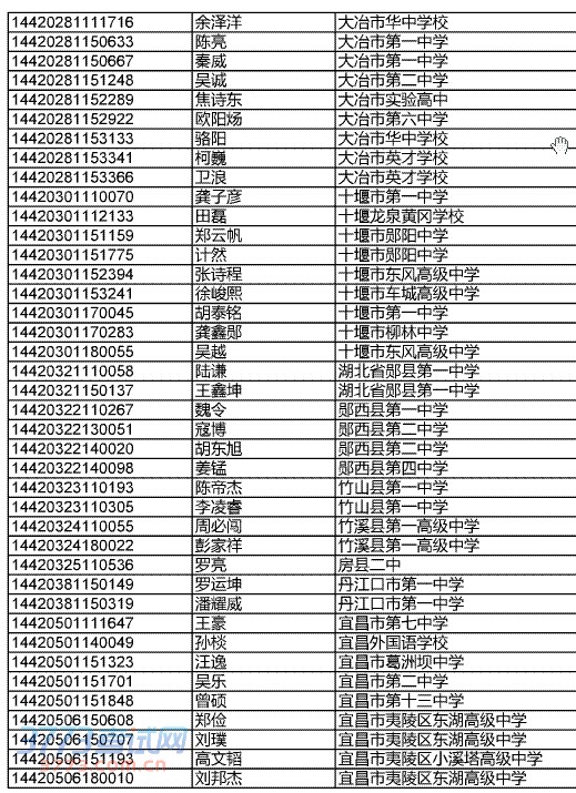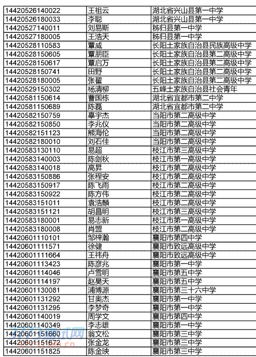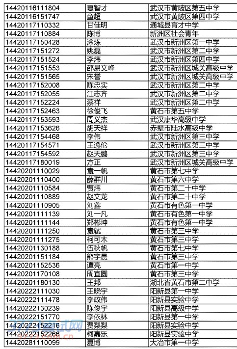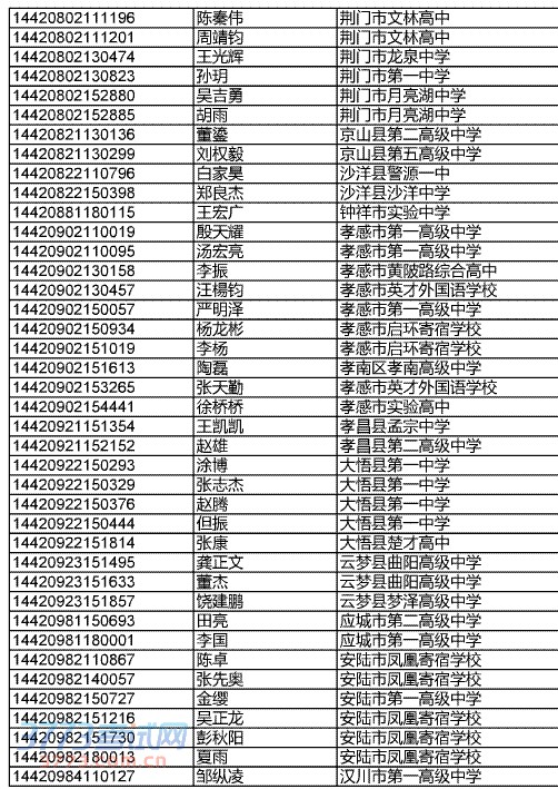 湖北省2014年直招士官参检总名单湖北省2014年直招士官参检总名单