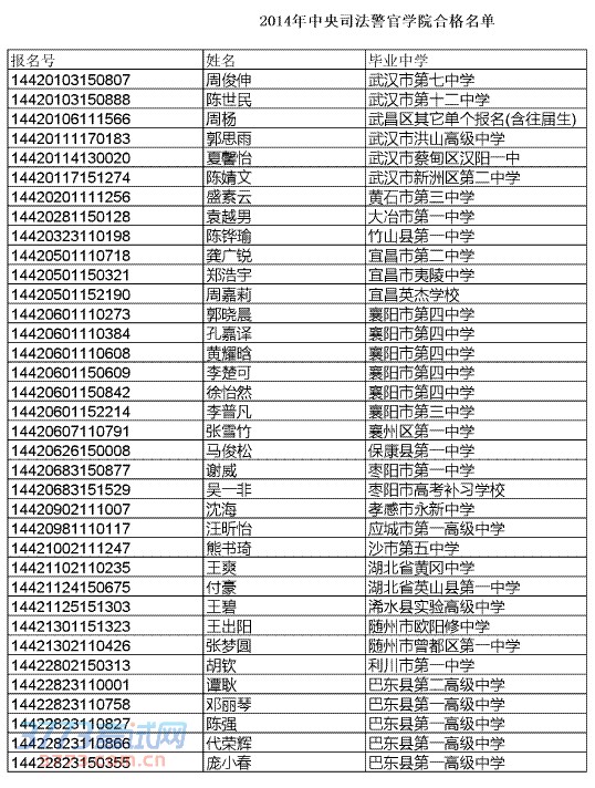 2014年中央司法警官学院合格名单2014年中央司法警官学院合格名单