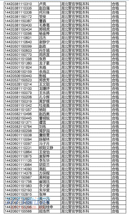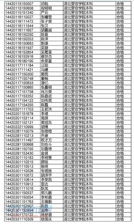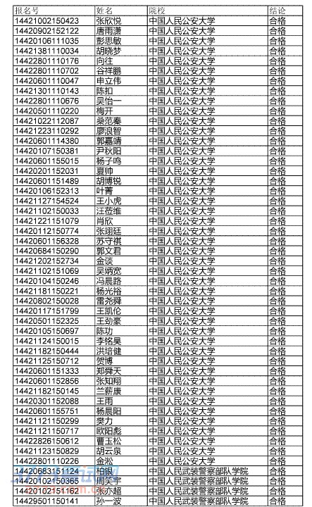 [组图]2014年湖北高考公安院校合格名单公示
