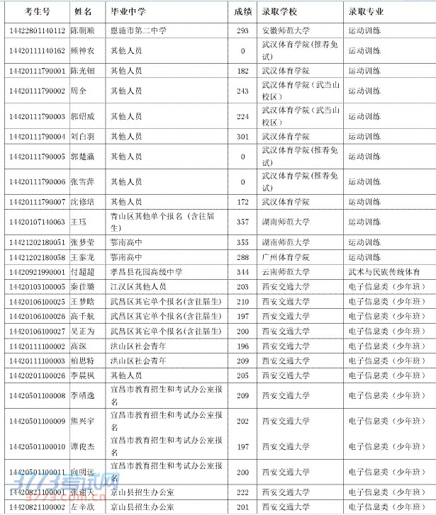 [组图]2014年湖北省单独招生录取考生公示名单(五)