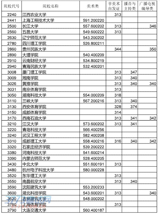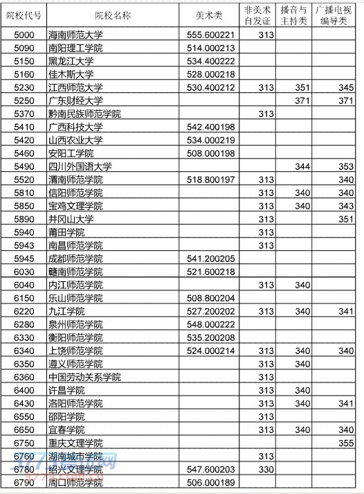 [组图]2014湖北艺术本科二院校美术类和非美术类投档分数线