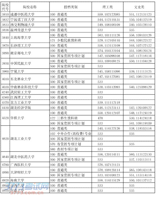 [组图]2014湖北高考一本院校平行志愿投档分数线