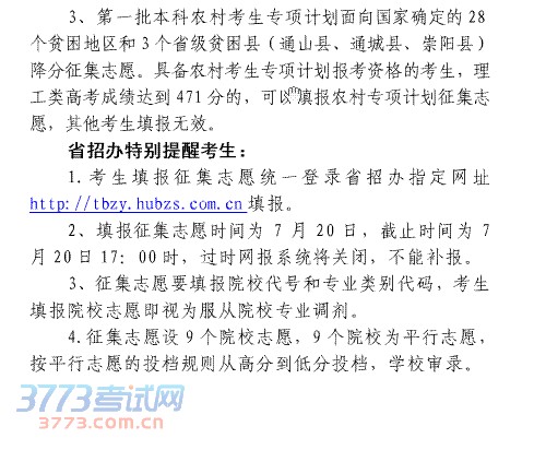 [组图]2014湖北高考一本理科专项计划第二次降分征集志愿公告