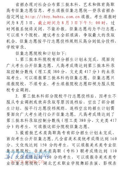 [组图]2014湖北三本和提前批艺术体育专科征集志愿公告