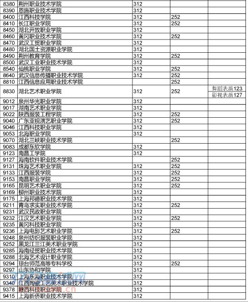 [组图]2014湖北高考专科艺术类院校征集志愿投档线