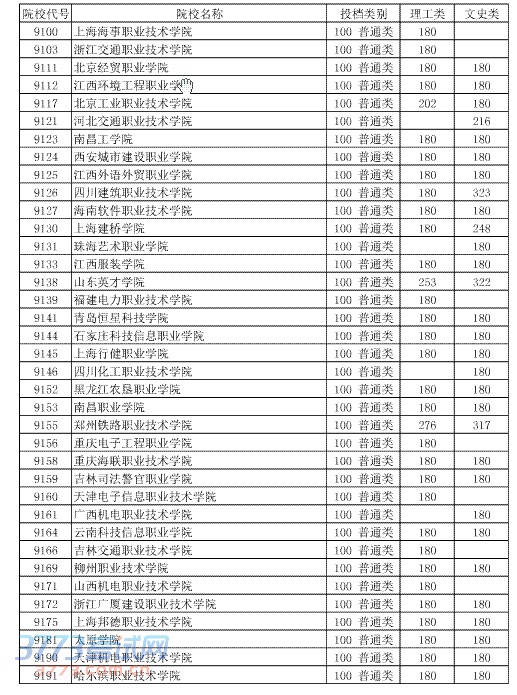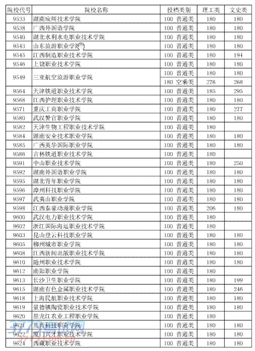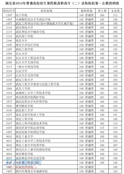 湖北省2014年普通高校招生第四批高职高专(二)录取院校第一志愿投档线