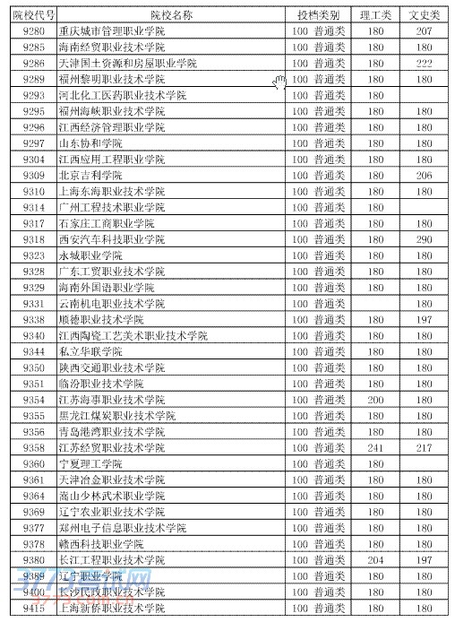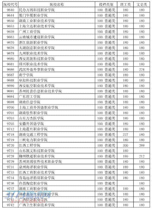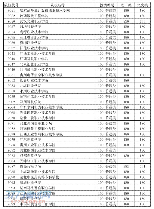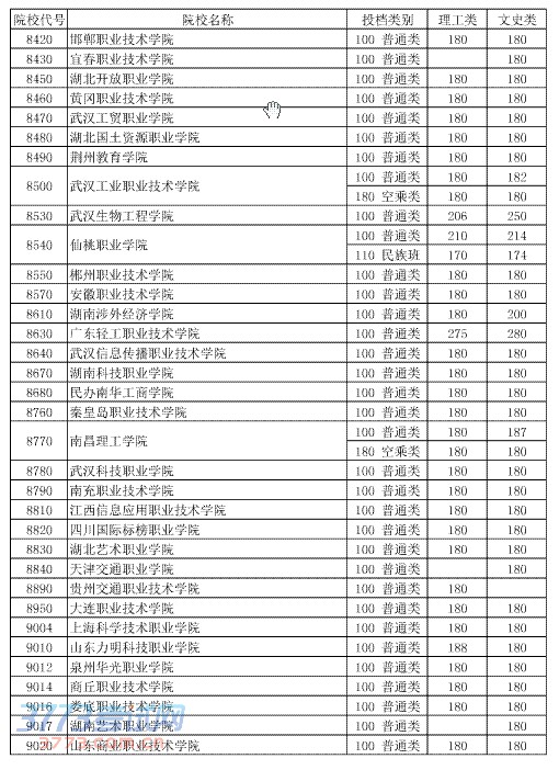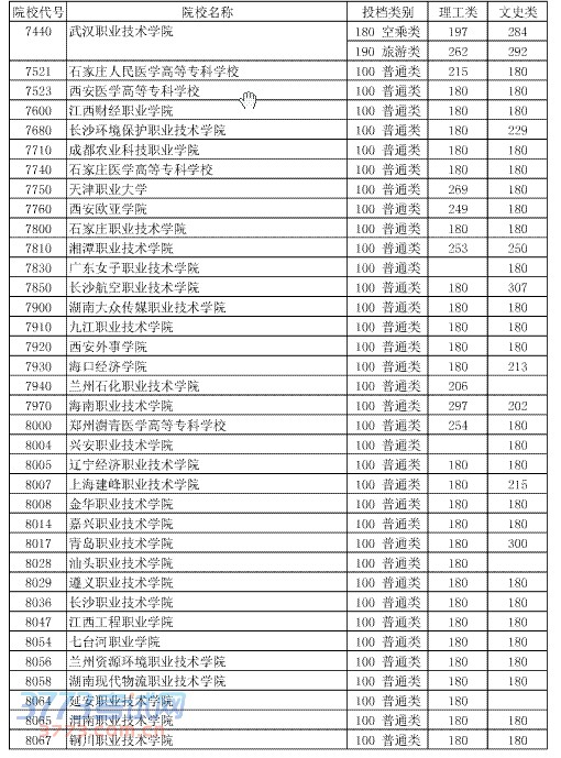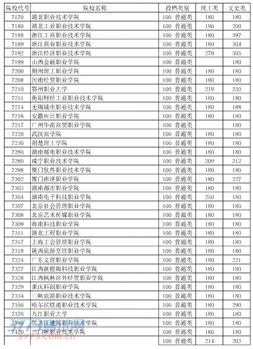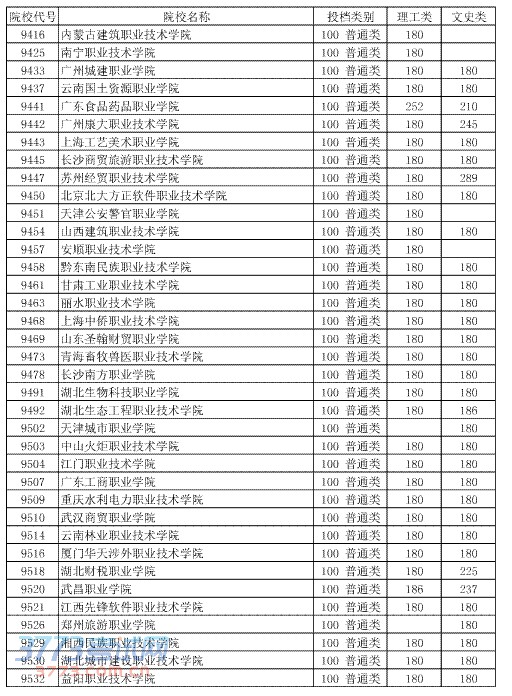 [组图]2014湖北高考第四批专科二录取院校投档分数线