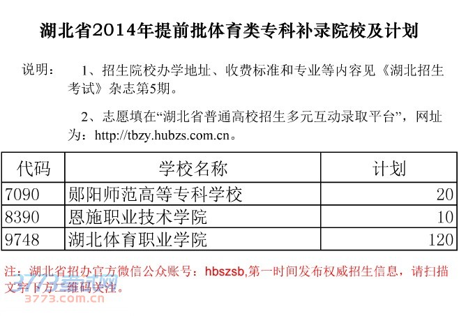 湖北省2014年提前批体育类专科补录院校及计划湖北省2014年提前批体育类专科补录院校及计划