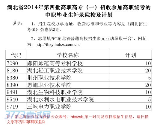 [图文]2014湖北高考招收参加高职统考的中职生补录院校及计划