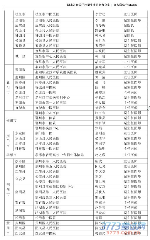 [组图]2015湖北高考招生体检机构及主检医师名单