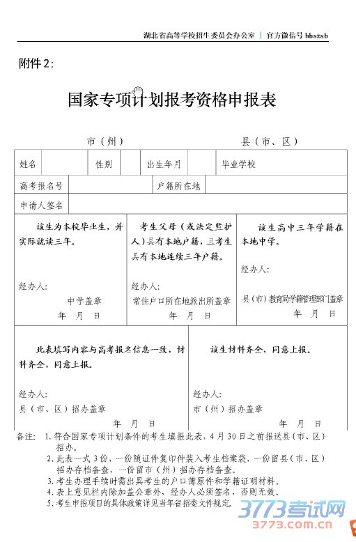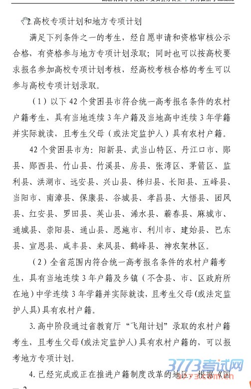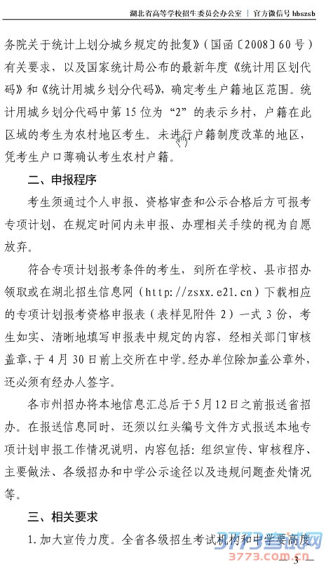 [组图]2015湖北国家专项计划高校专项计划和地方专项计划报考资格申报