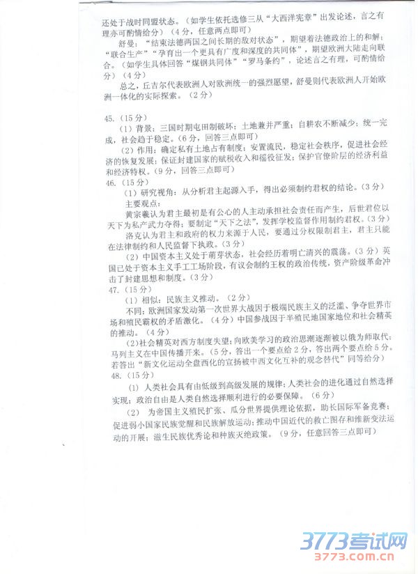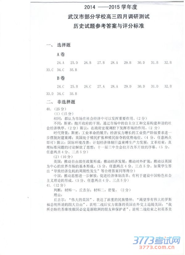 [组图]武汉市2015届四月调考历史答案及评分细则