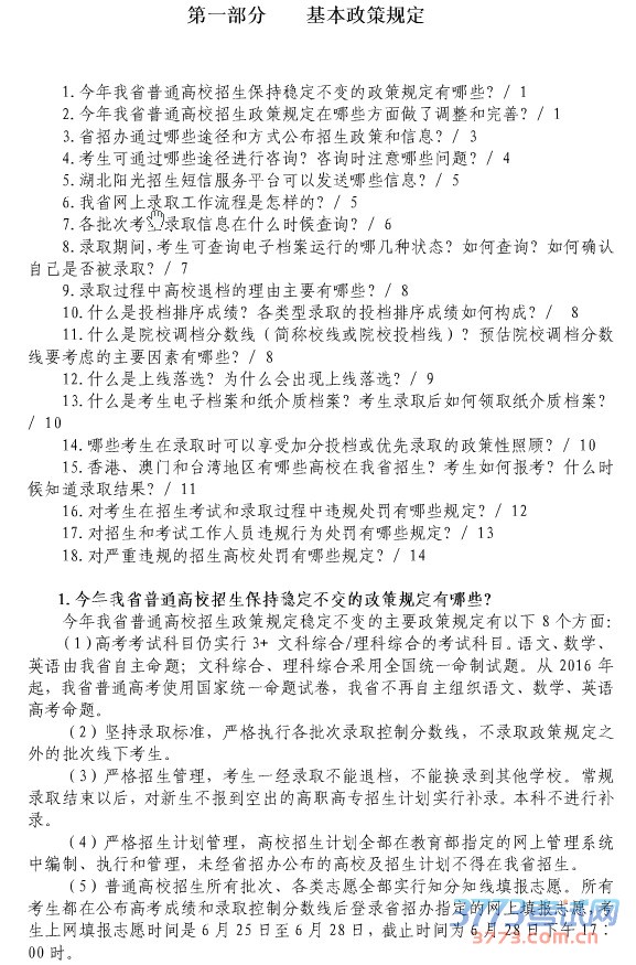 [组图]2015湖北高考方案政策规定