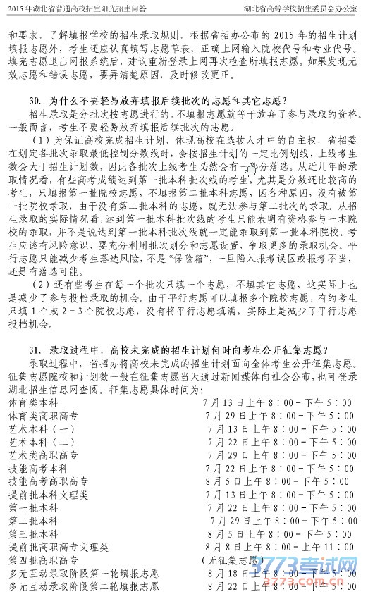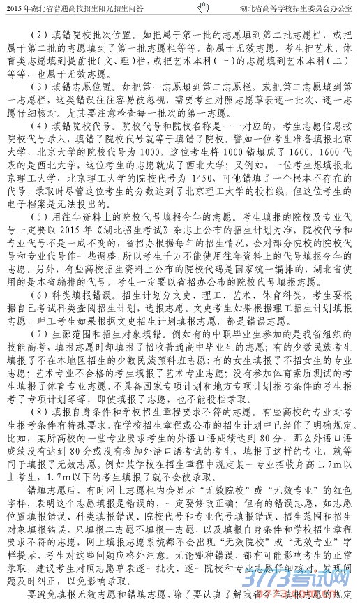 [组图]2015湖北高考填报志愿须知步骤注意事项
