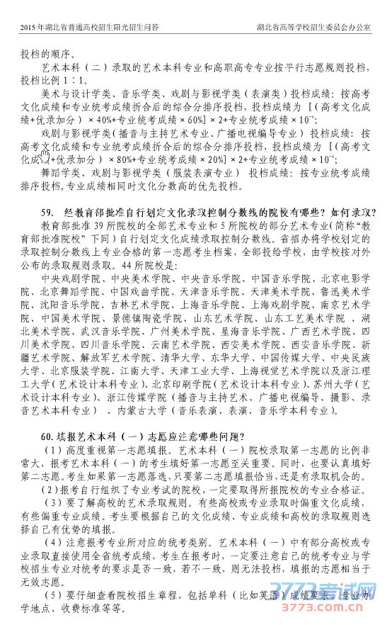 [组图]2015湖北高考提前批艺术体育类录取政策