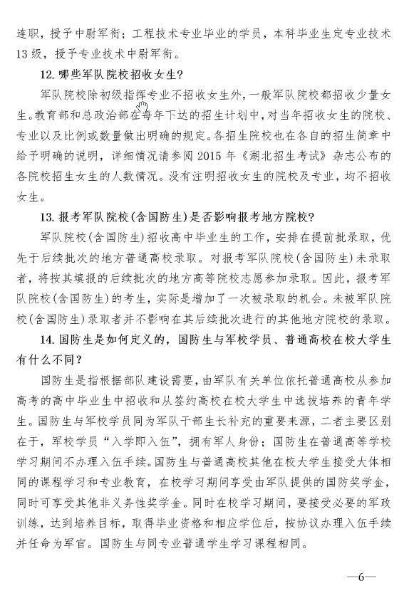 [组图]2015湖北高考填志愿:军校国防生报考指南