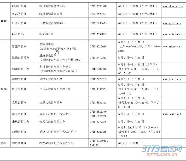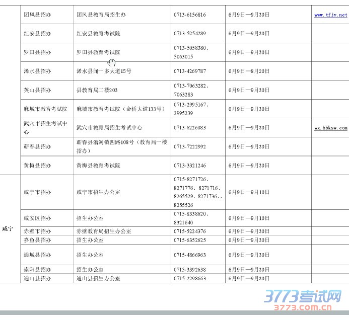 湖北省2015年市(县、区)招办咨询接待联系方式