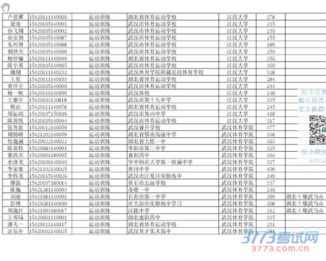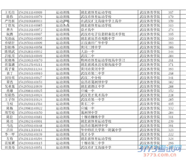 [组图]2015湖北单招录取考生名单(运动训练武术与民族传统体育)
