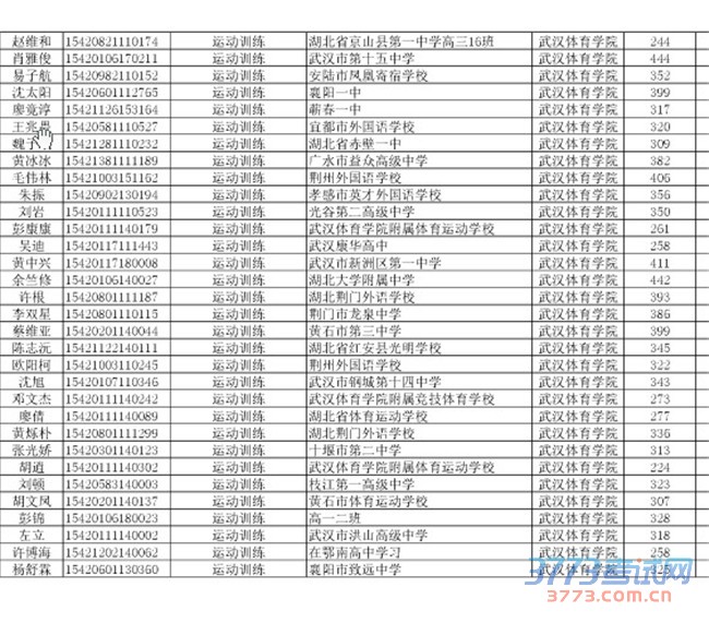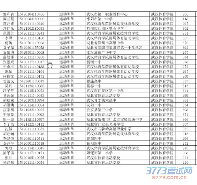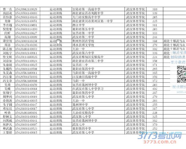 [组图]2015湖北单招录取考生名单(运动训练武术与民族传统体育)