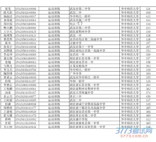 [组图]2015湖北单招录取考生名单(运动训练武术与民族传统体育)