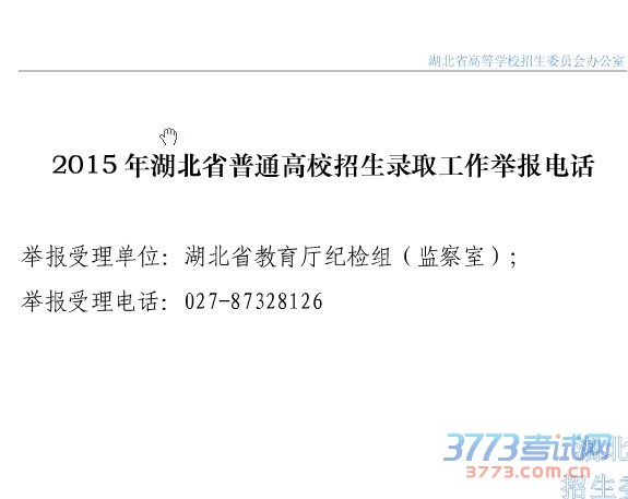2015年湖北省普通高校招生录取工作举报电话