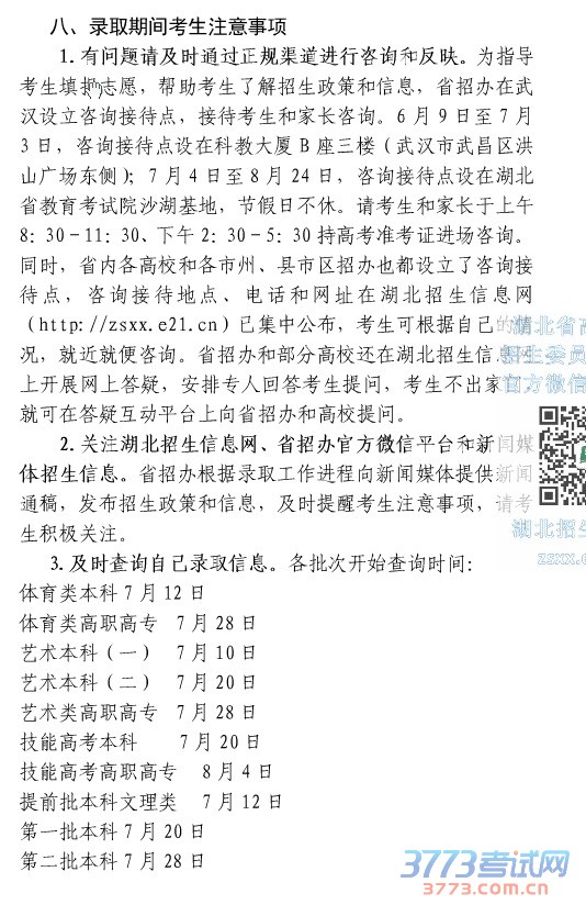 [组图]2015湖北高考录取期间考生注意事项