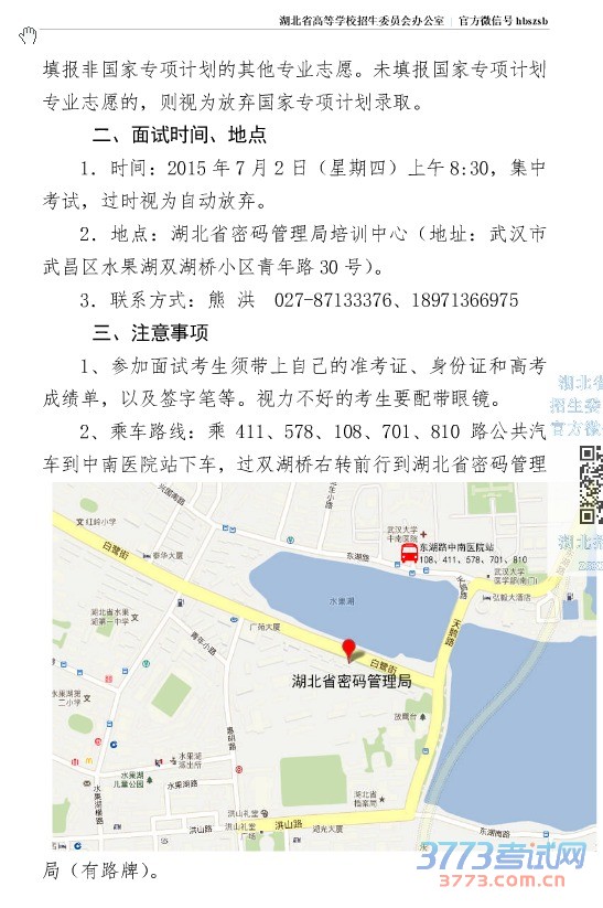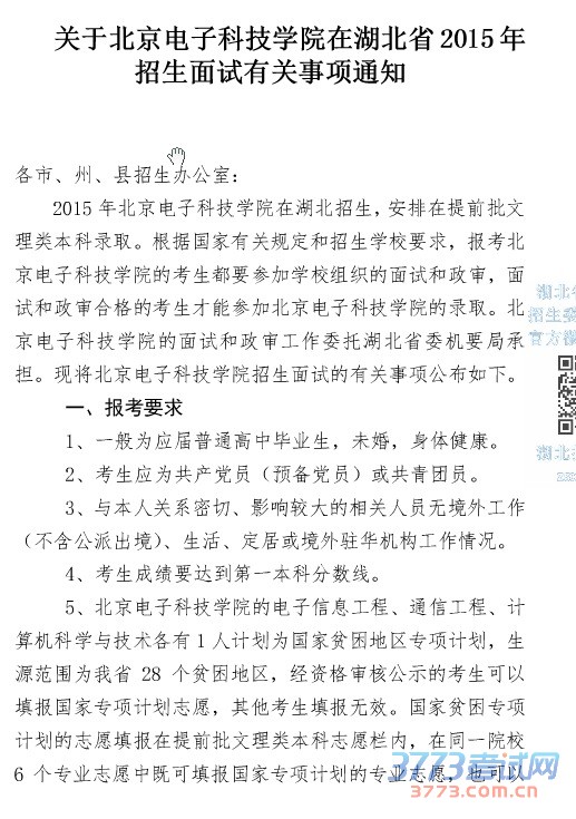 [组图]北京电子科技学院2015年湖北招生面试有关事项通知
