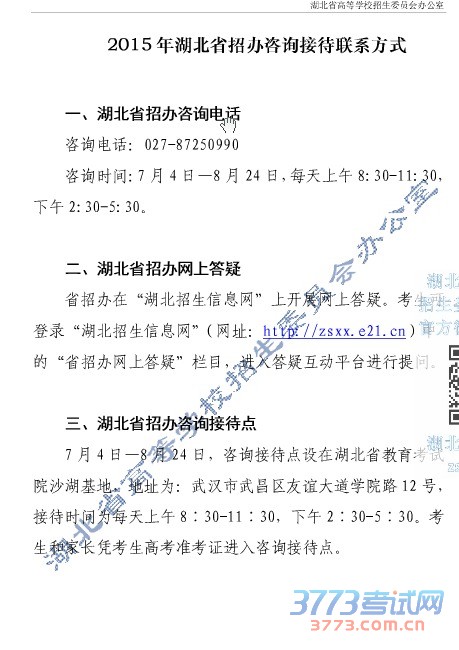 [图文]2015湖北省招办咨询接待联系方式(7月4日起)