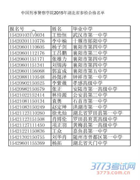 [图文]中国刑事警察学院2015年湖北省参检合格名单