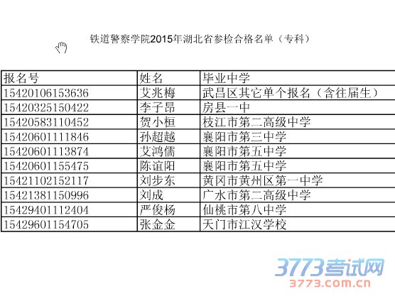 铁道警察学院2015年湖北省参检合格名单(专科)