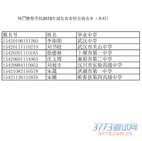 铁道警察学院2015年湖北省参检合格名单(本科)