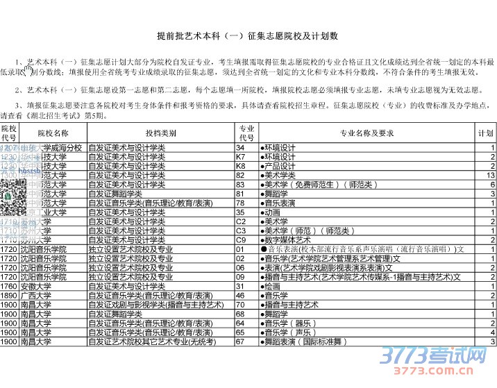 [组图]2015湖北高考提前批艺术本科一征集志愿院校及计划数