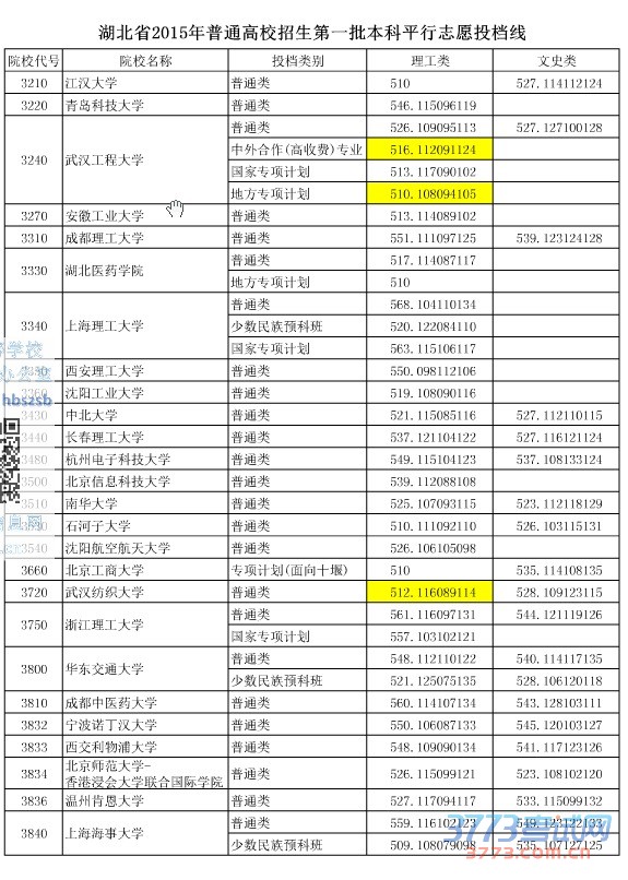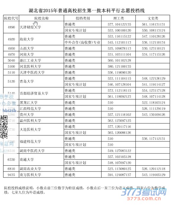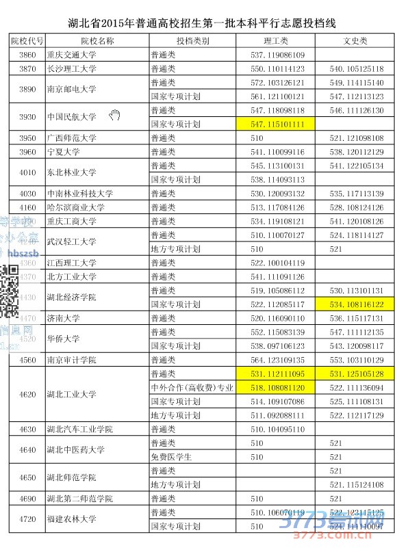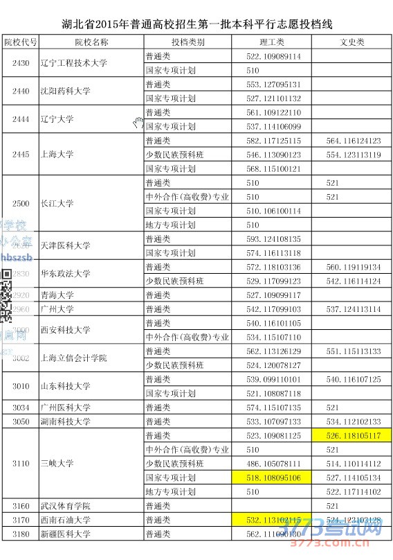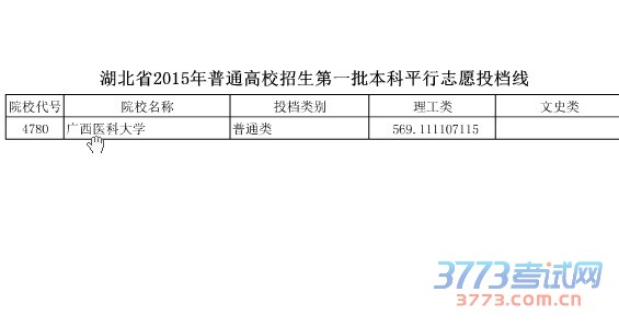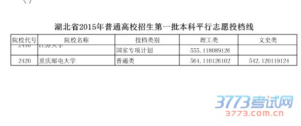 [组图]2015湖北高考一本投档分数线(平行志愿)
